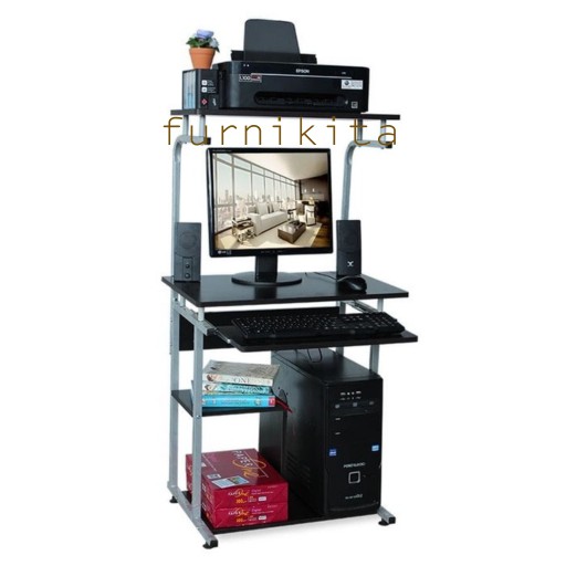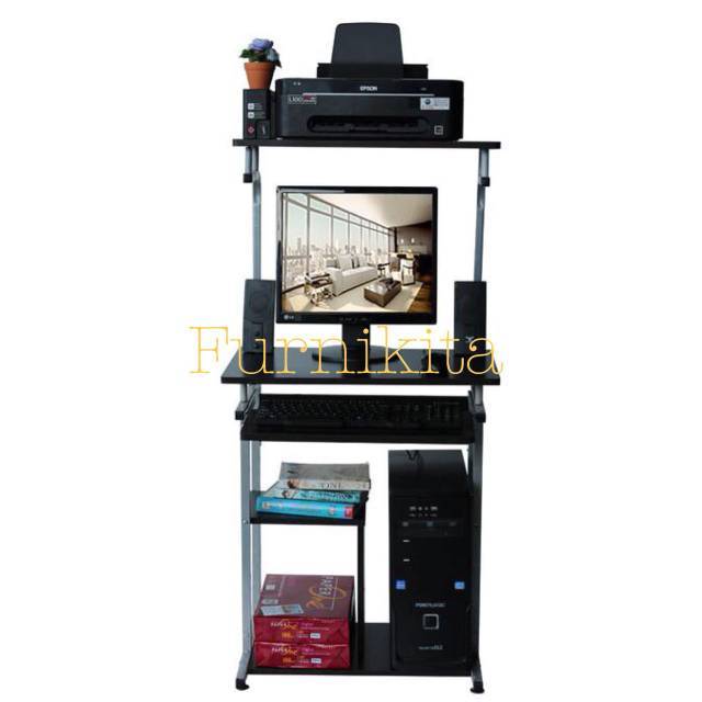 Koleksi Foto [ Perlengkapan Rumah ] PRODUK LARIS MEJA KOMPUTER MURAH RAK KOMPUTER MURAH RANGKA BESI HUGA 905 - Hitam PALING MURAH